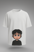 A bold graphic tee with a chill attitude. The Deadpan Boy – Oversized Tee features an unbothered cartoon boy printed on soft white cotton. With its fully oversized fit and drop shoulders, it’s built for all-day comfort and effortless streetwear style.